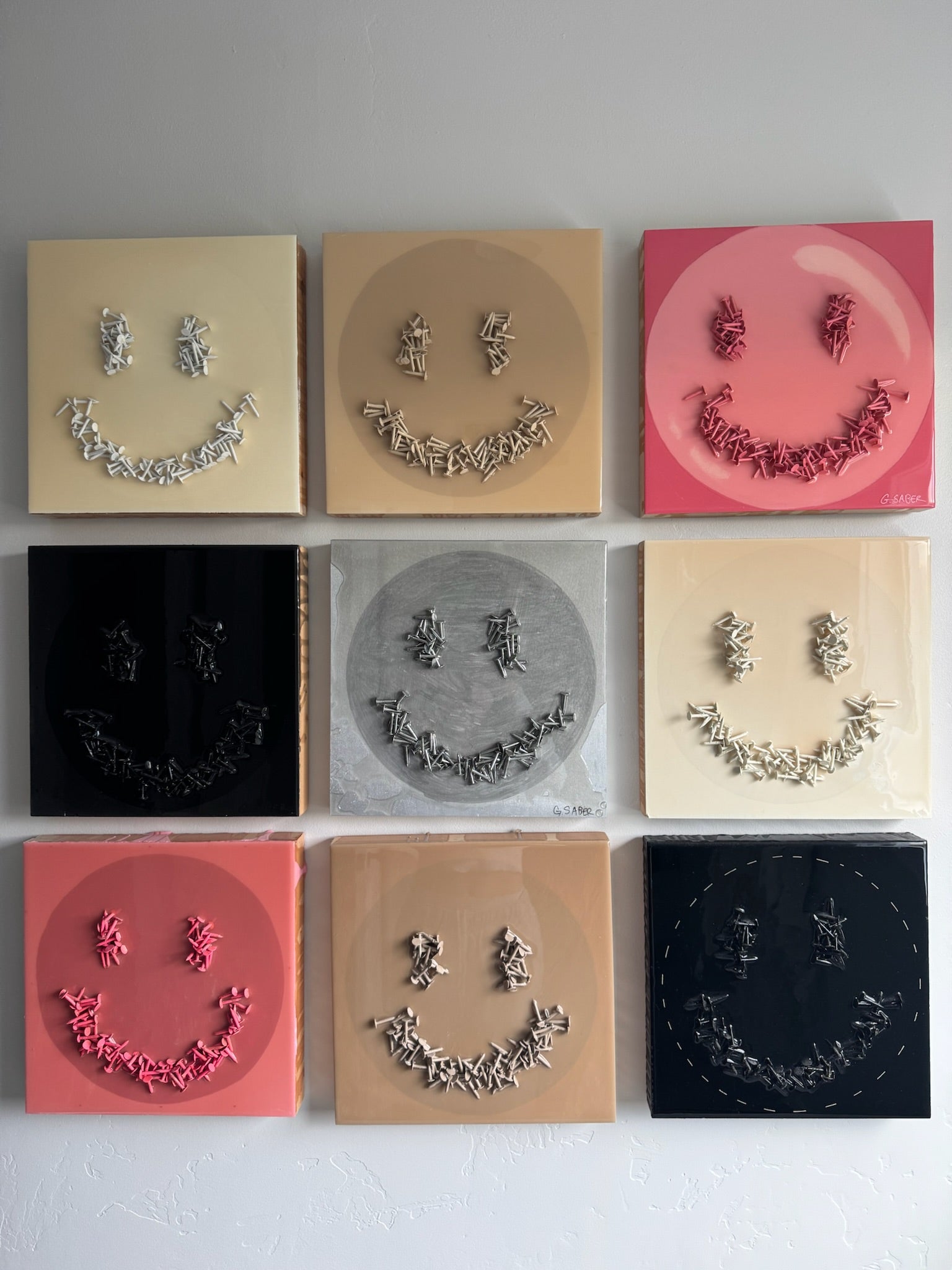 11 in x 11 in monochromatic smiles--sometimes it's tough to smile through all that life throws at us, but it's still better when we are smiling!
